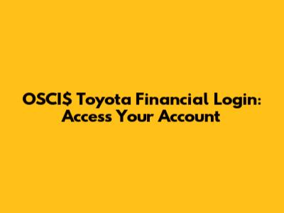 OSCI$ Toyota Financial Login: Access Your Account